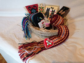 ETNO KORPA - Varijanta 1: Ova etno korpa može da sadrži različite naše proizvode kao što su: frula, frulica, guslice, mini ćilim, veći ćilim, tkanica-pojas, opančići, magnet za frižider, varjača, itd.