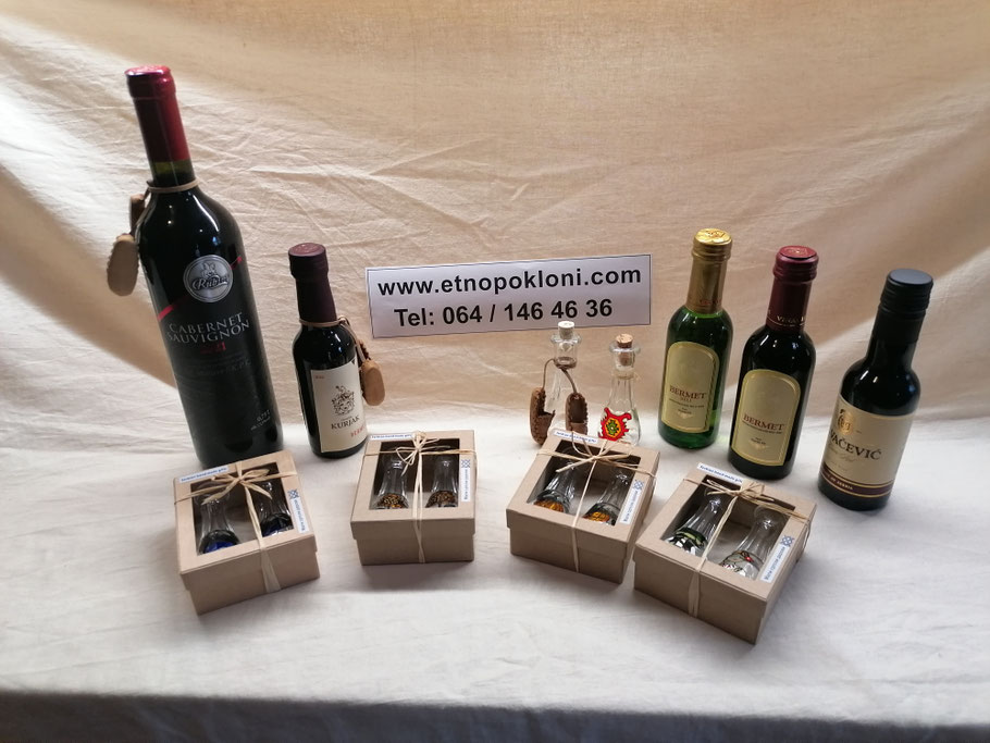 HRANA I PIĆE NIJE U NAŠEM PRODAJNOM PROGRAMU, ALI IMAMO KOOPERANTE SA KOJIMA RADIMO I PREKO KOJIH SE MOGU NABAVITI SVI PROIZVODI KOJI SU VAM INTERESANTNI ZA VAŠE ETNO KORPE. EVO ŠTA LJUDI NAJČEŠĆE UZIMAJU, GENERALNO, AJVAR, SLATKO, MED, ČOKOLADA, RAKIJA I VINO. Za potrebe Vaših korpi, možete Vi kupiti i doneti nam ili nam dostaviti taj segment hrane i pića, nakon čega formiramo etho korpu po Vašoj želi sa još nekim od naših proizvoda. Evo primera hrane i pića: